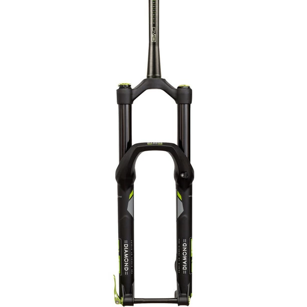 Die neue Diamond verfügt über eine Vielzahl von Merkmalen, die den aggressiven Fahrer ansprechen, der mehr verlangt. DVO hat das Chassis der Gabel von oben bis unten überarbeitet und den BOOST-Abstand um 10 mm vergrößert. Dies verbessert die Lenkpräzision und die Kontrolle in den Momenten des ultimativen Shreds“. DVO hat auch die Reifenfreiheit vergrößert, so dass Sie einen größeren Reifen verwenden können und immer noch Freiraum für Schlamm haben.
