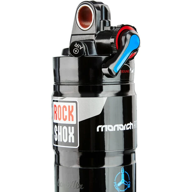 - Einstellung: Luftdruck über Schrader Ventil, externe Zugstufenverstellung, 3-stufiges Floodgate